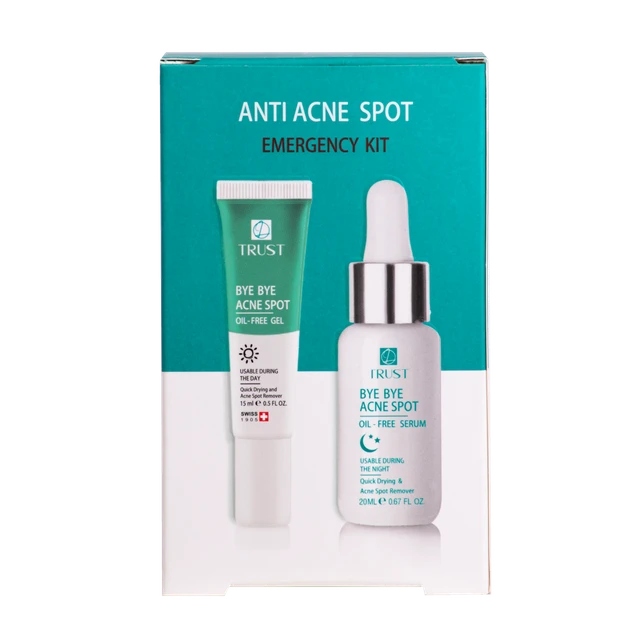 کیت آنتی آکنه فوری تراست با قابلیتهای زیادش به رفع سریع آکنه روی پوست صورت شما کمک میکند. این سرم و ژل، همچنین چربی پوست را با لایهبرداری ملایم در آن ناحیه کاهش میدهند.
