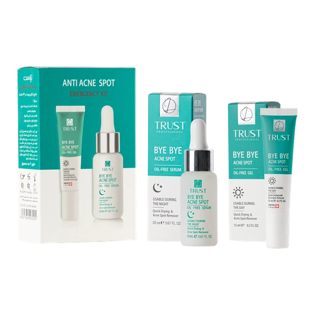 کیت آنتی آکنه فوری تراست با قابلیتهای زیادش به رفع سریع آکنه روی پوست صورت شما کمک میکند. این سرم و ژل، همچنین چربی پوست را با لایهبرداری ملایم در آن ناحیه کاهش میدهند.